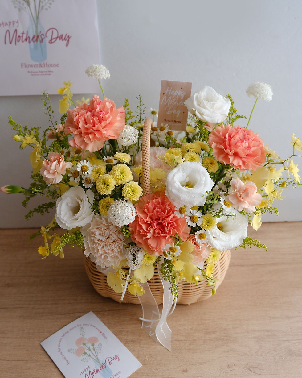 莫內花園|春日野餐提籃盆花|黃粉S|母親節鮮花盆